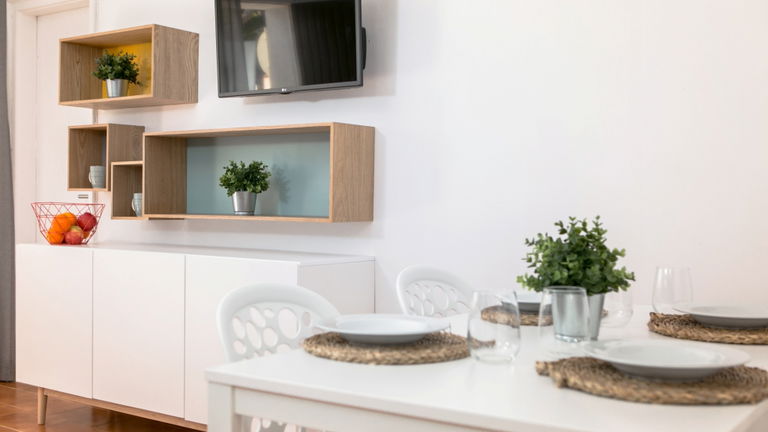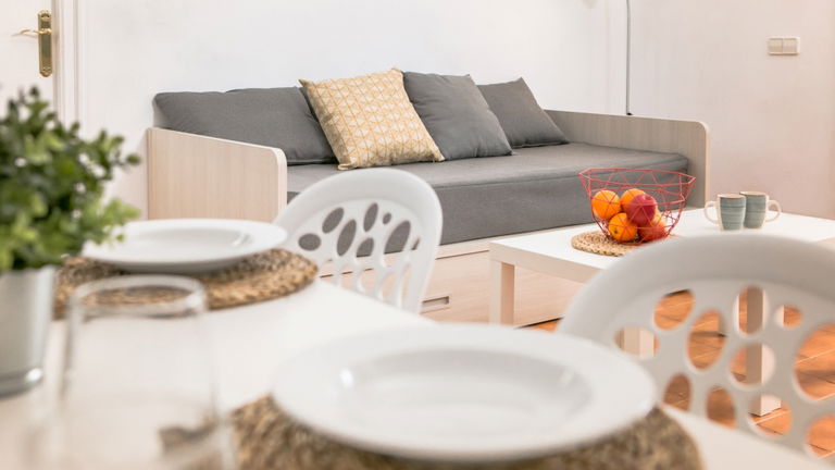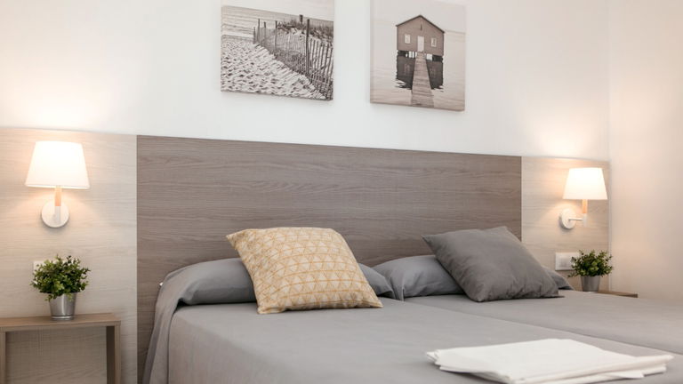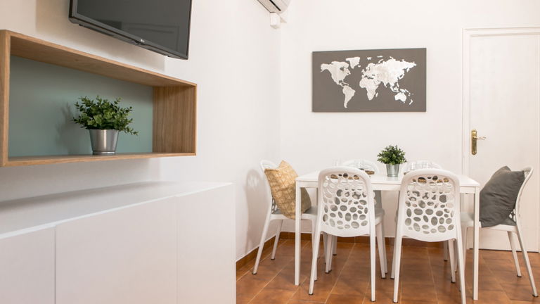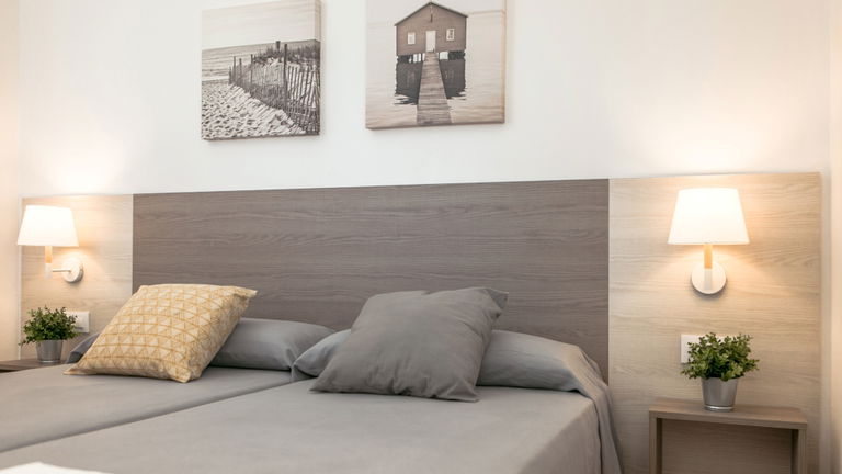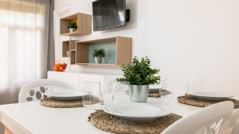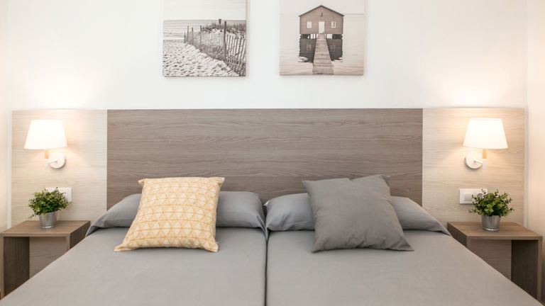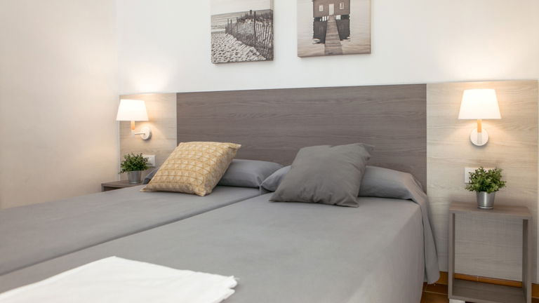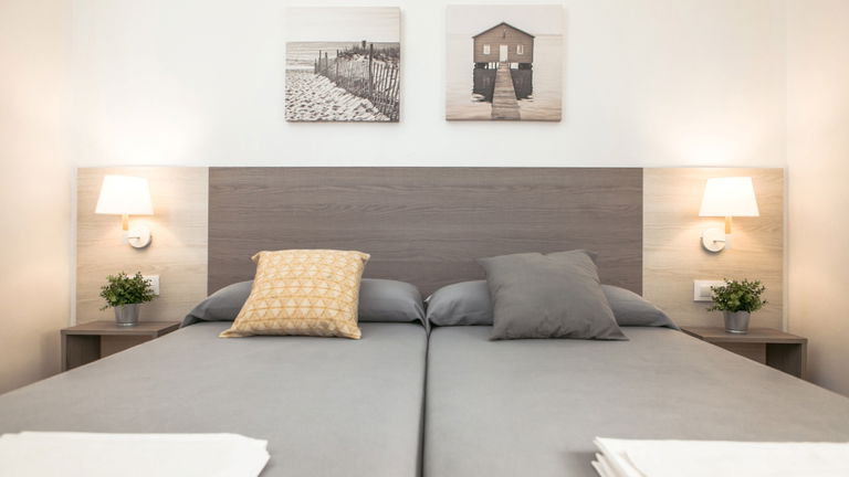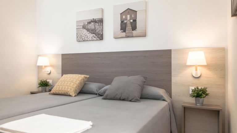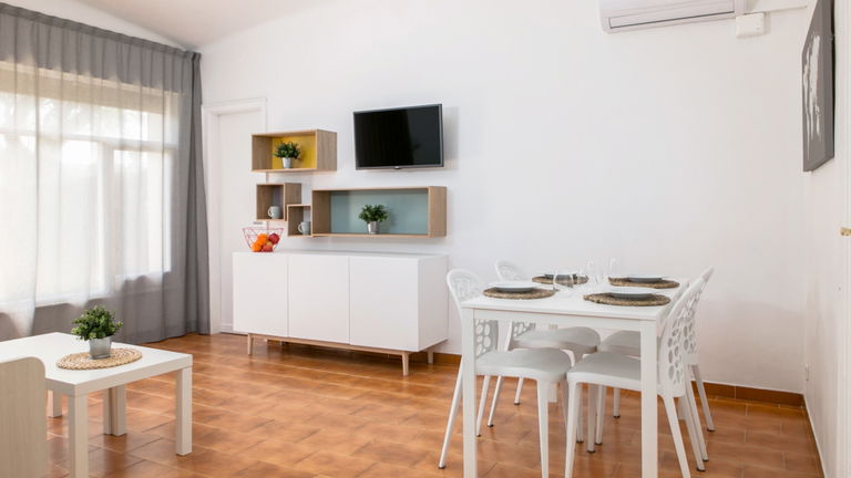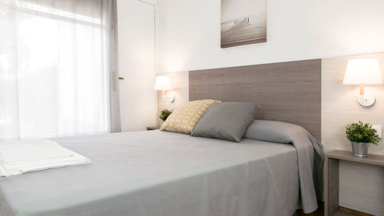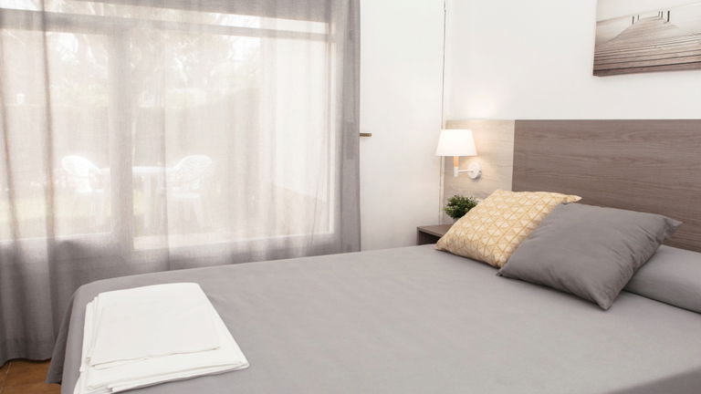 These apartments are located in the first floor and have 2 double rooms with twin beds or a double bed. The apartment also has a bathroom completely equipped with shower. The living room has a double sofa-bed and a TV. In the terrace you'll be able to enjoy your dinner outside.