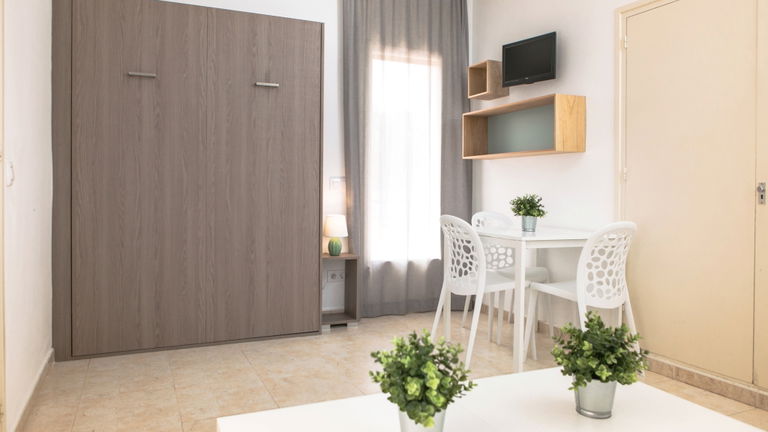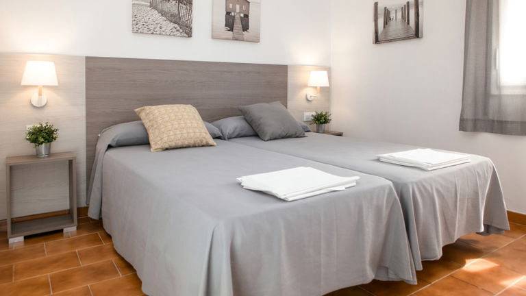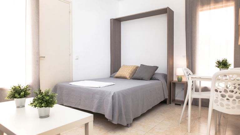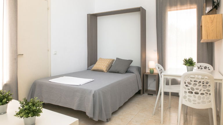These apartments have 1 room with twin beds or a double bed. The apartment also has a bathroom completely equipped with shower. The living room has a sofa-bed and a TV.