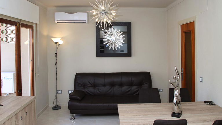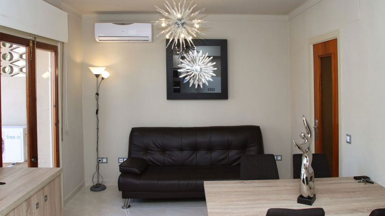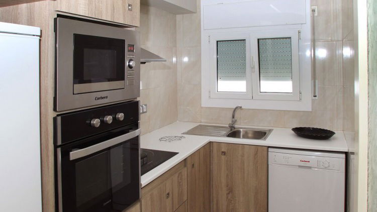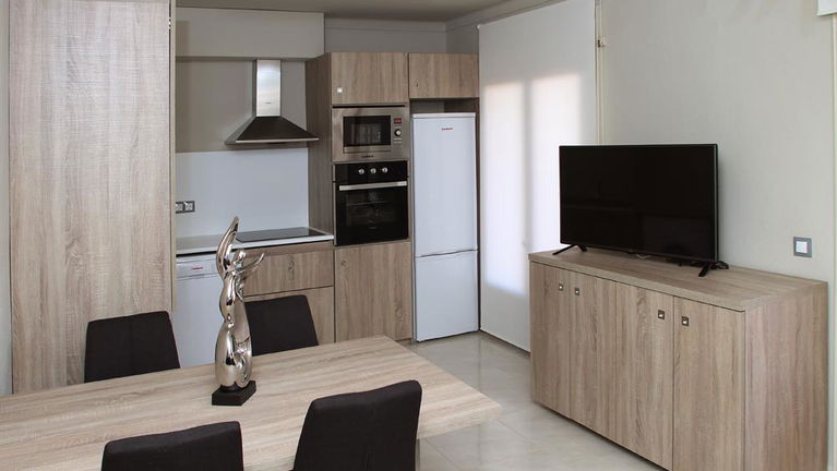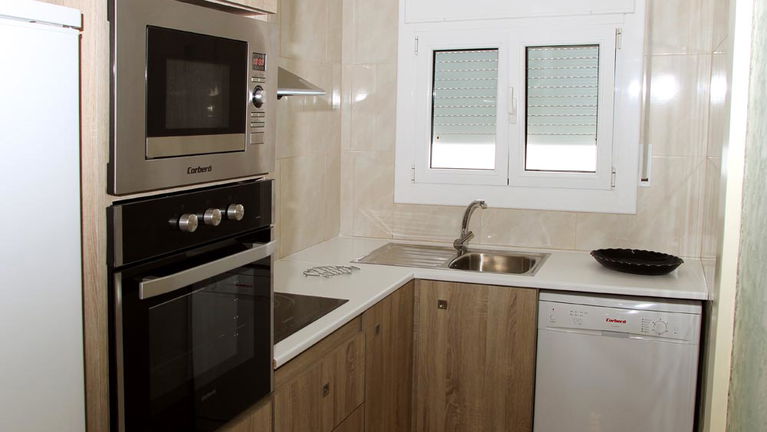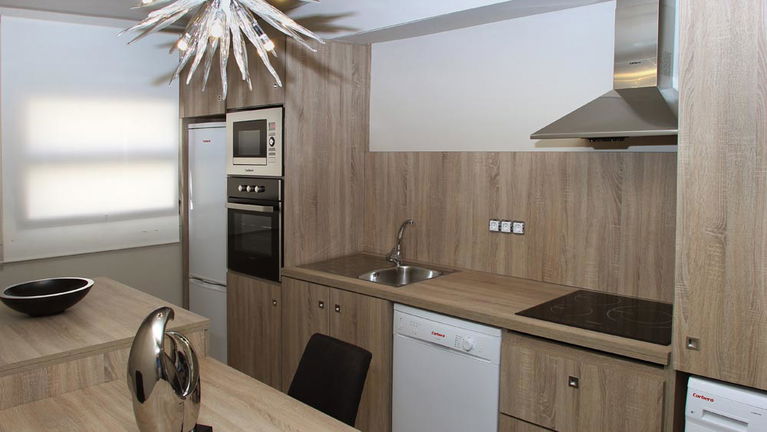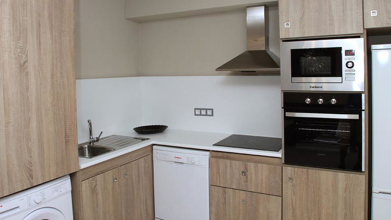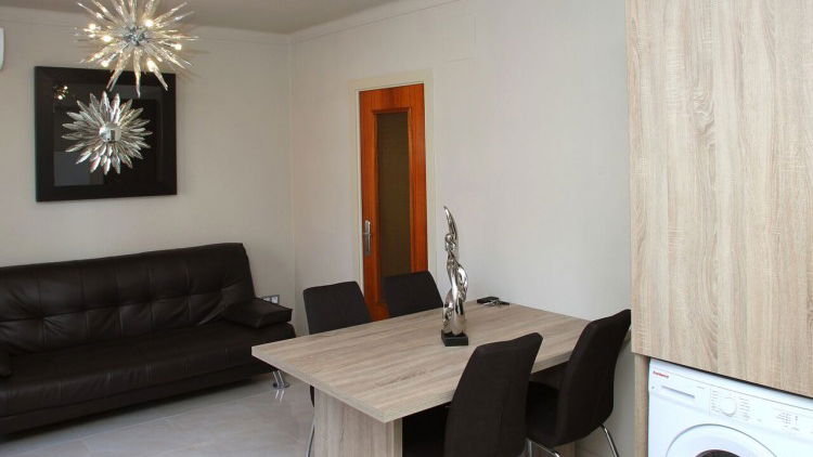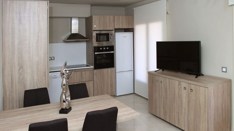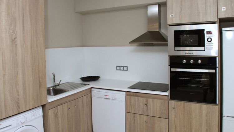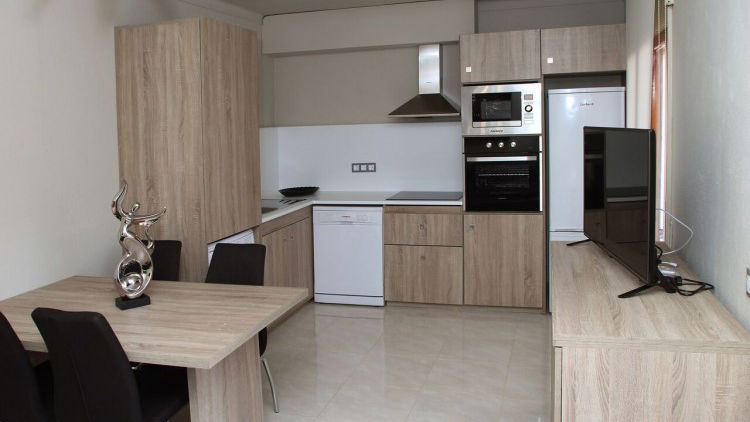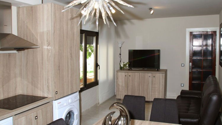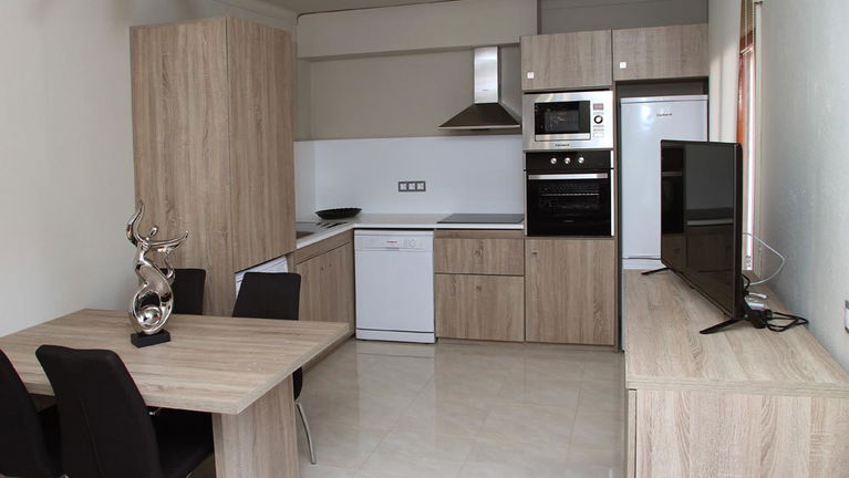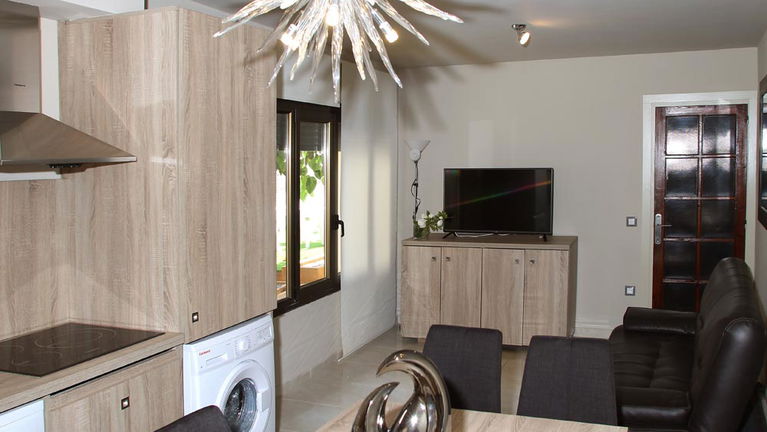 The apartment is located on the gound floor and provides a living room canteen sofa bed 2 squares, 1 double room, 1 bathroom, open plan kitchen equipped with microwaves, vitro, oven, fridge and dishwasher, television, as well as one furnished balcony or terrace.