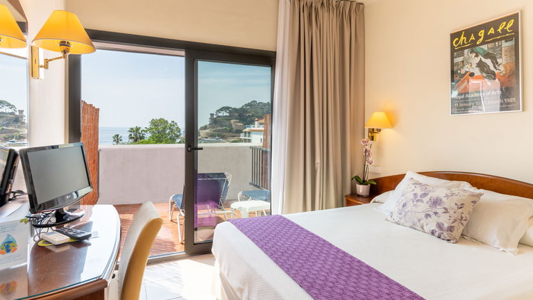 Sea view rooms are very bright and are designed for an incredible wake-up with privileged views of the beach and the old town of Tossa.