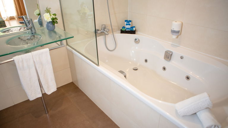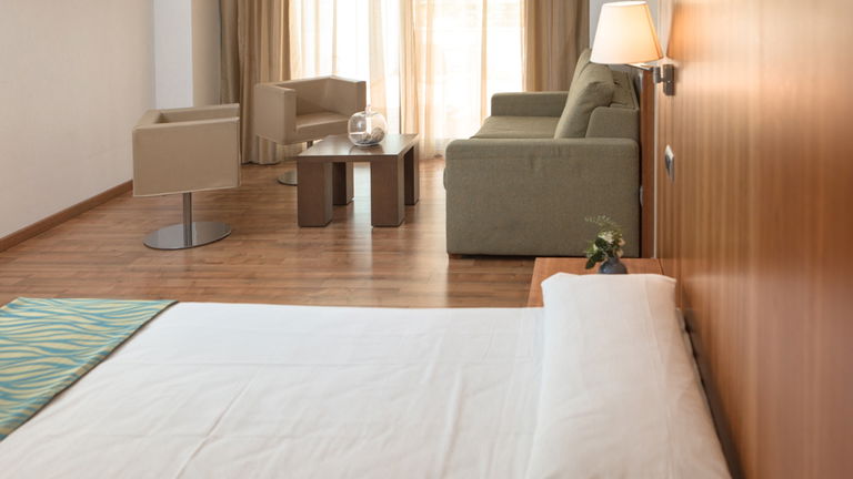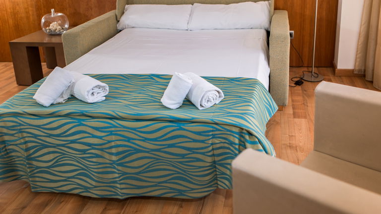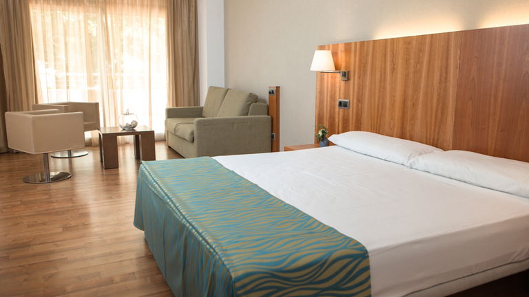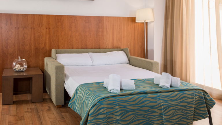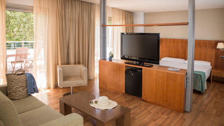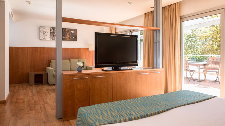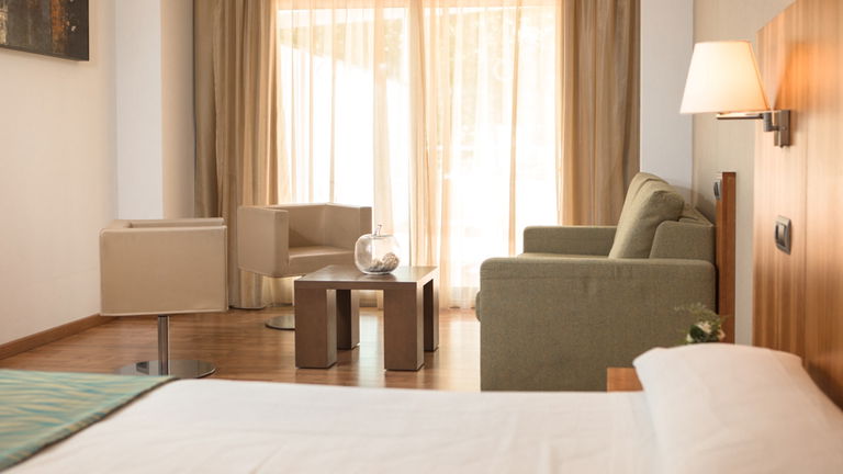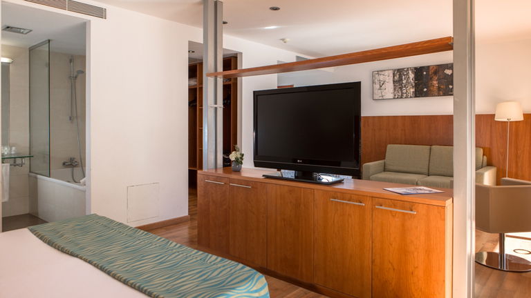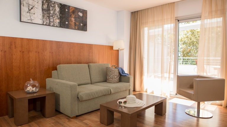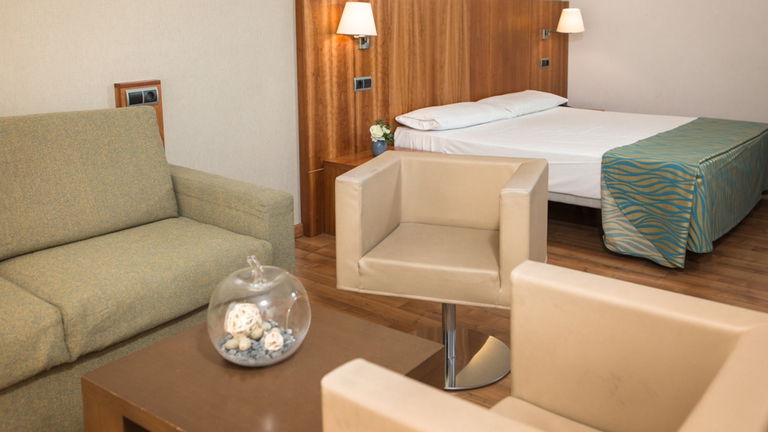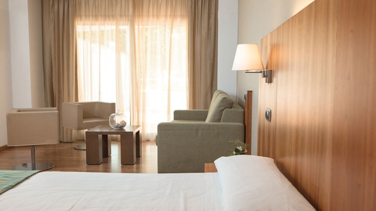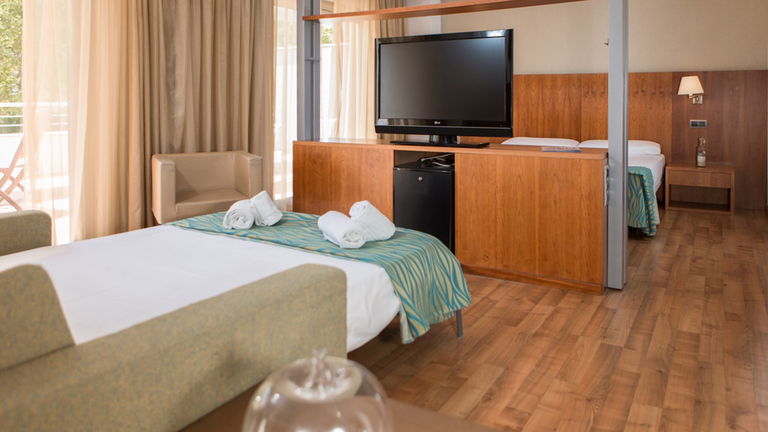 Spacious Junior Suites equipped with double bed, double sofa bed, terrace and bathroom with bathtub.