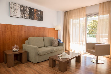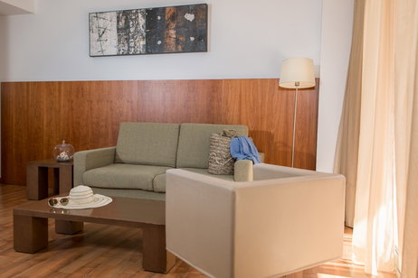 Spacious suites equipped with 1 dining room with double sofa bed, 1 bedroom with double bed, bathroom with hydromassage bath, dressing room and terrace overlooking the harbor.
