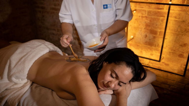 Chocolaterapia: masaje con chocolate cliente, envoltura corporal de chocolate y aplicación de crema de naranja y chocolate 60 minutos .