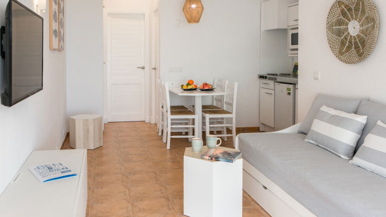 Equipadas con terraza, 2 habitaciones, cocina completa, baño privado y salón comedor con sofá cama.