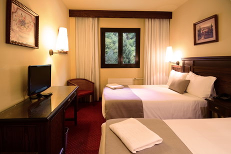 Las habitaciones cuádruples estándar son perfectas para alojar ente 2 y 4 personas en una de las mejores zonas del Pirineo. Dispone de 2 camas de 135 cm y un baño con bañera.